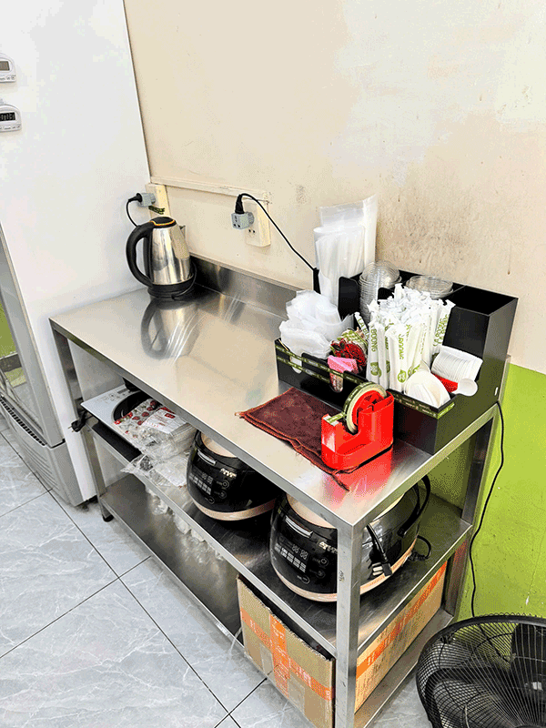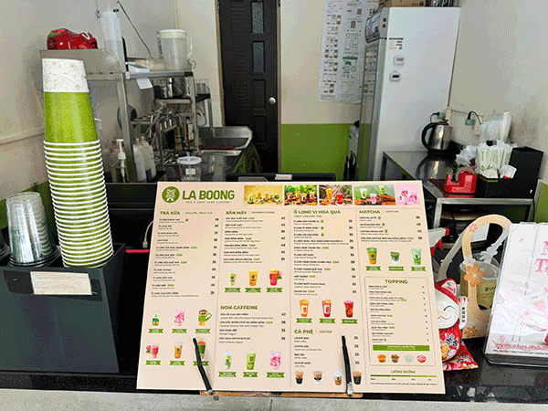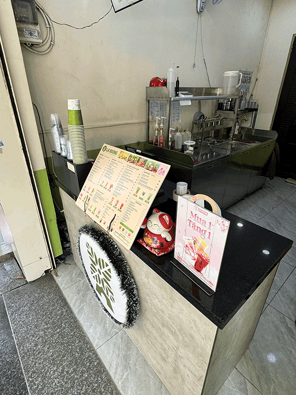- Nội thất: Toàn bộ hệ thống bán hàng, nội thất, máy pod, bộ thiết bị pha chế, bộ nồi nấu trà sữa, có nhà vệ sinh phía sau